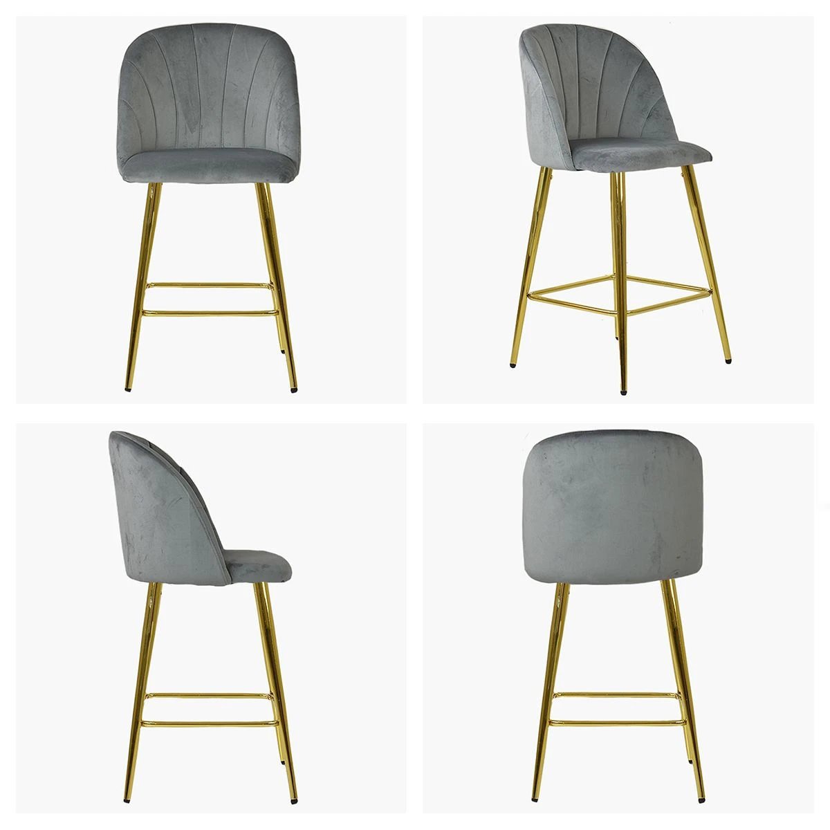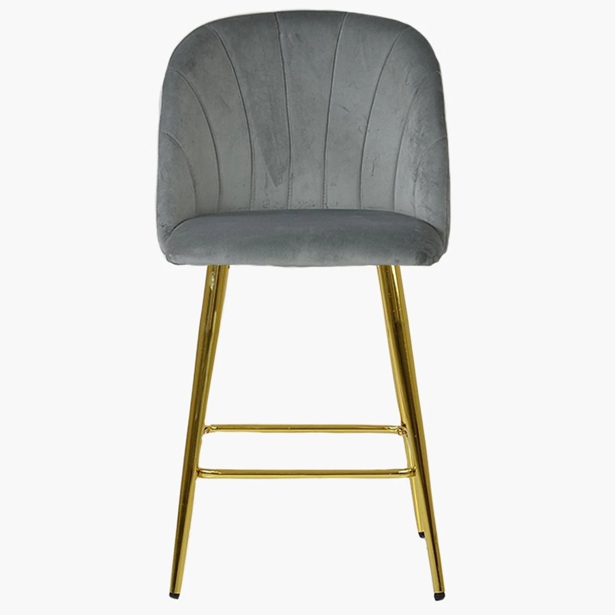 Scada Grey Velvet Gold Leg Barstool - Image 4