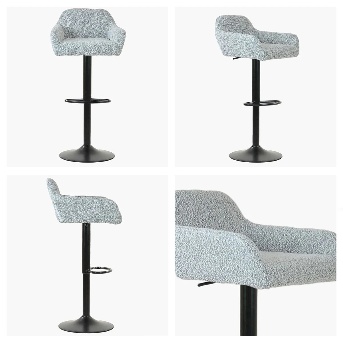 Boucle Fabric Adjustable Stool with Gas Lift Leg