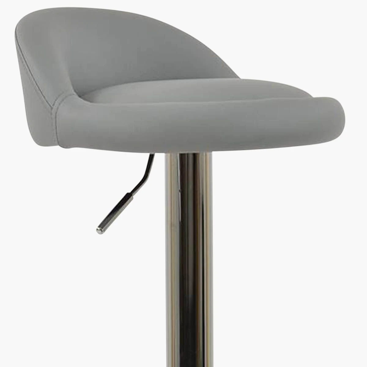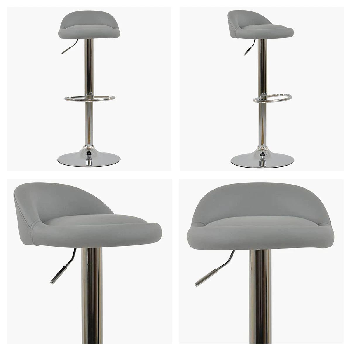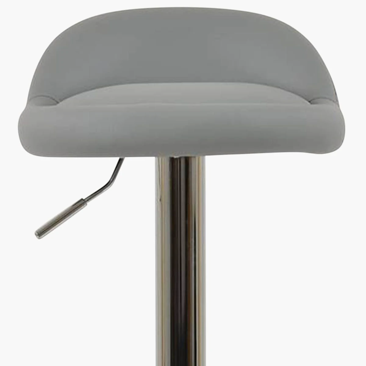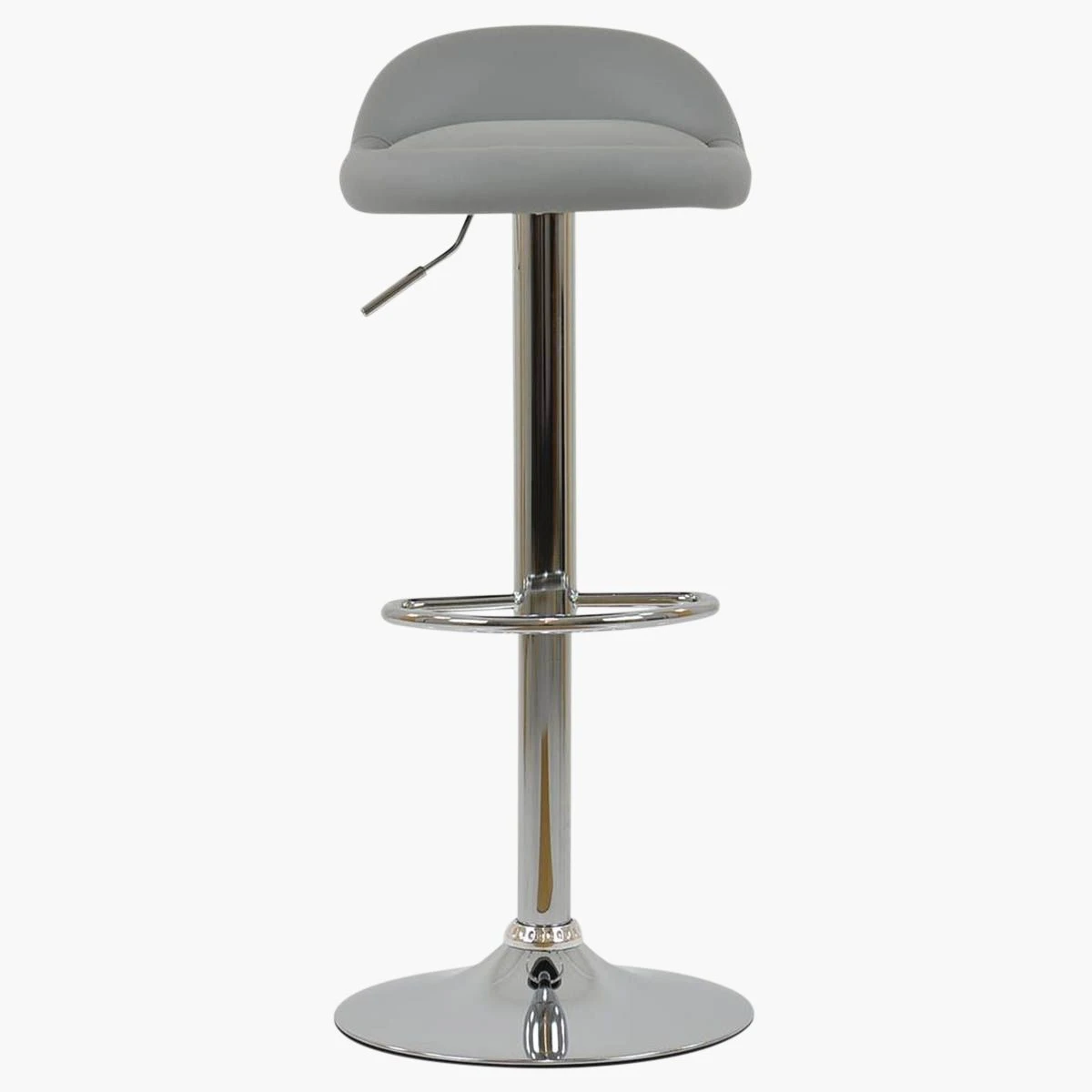 Meet the Tempo bar stool in grey faux leather – a stylish and comfortable choice for your kitchen. Its grey faux leather seat adds a touch of sophistication to your space. The small backrest provides support without sacrificing its modern design. The circular shape of the seat adds a unique touch to its overall look. Plus, it is in stock and ready for next-day delivery.