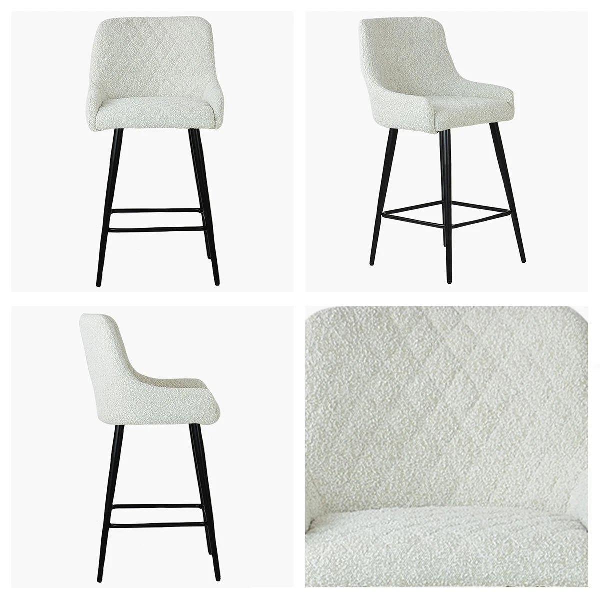Boucle Fabric Seat Fixed Height Stool Elegant Design