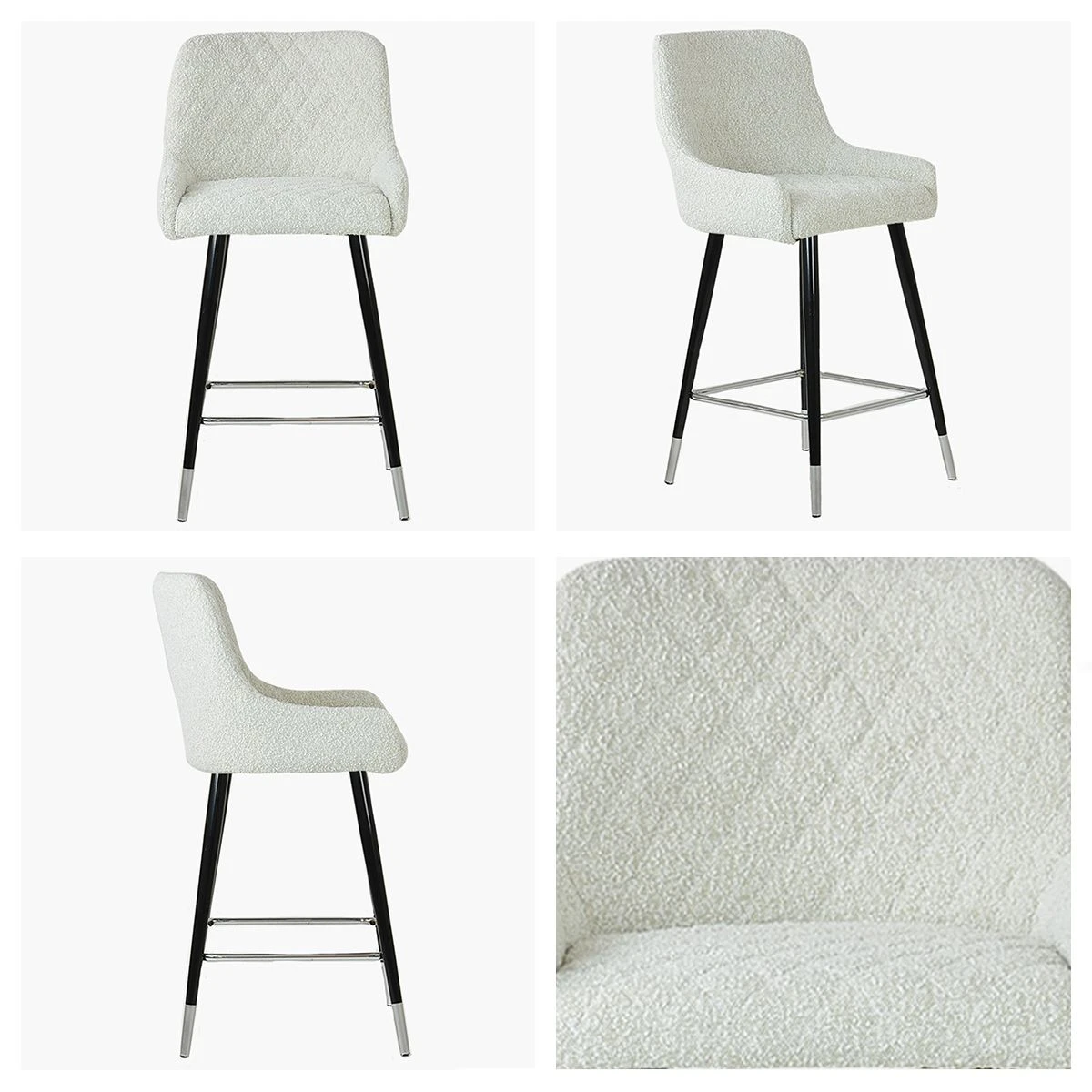 Boucle Fabric Seat Fixed Height Stool Elegant Design