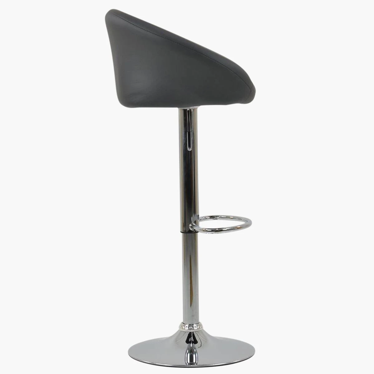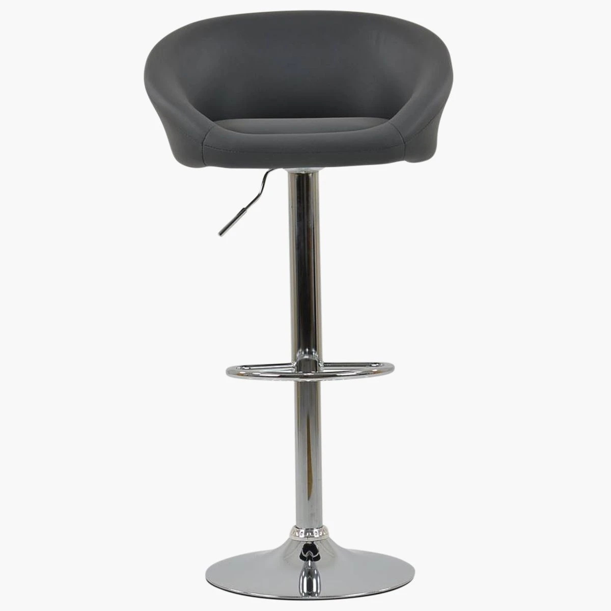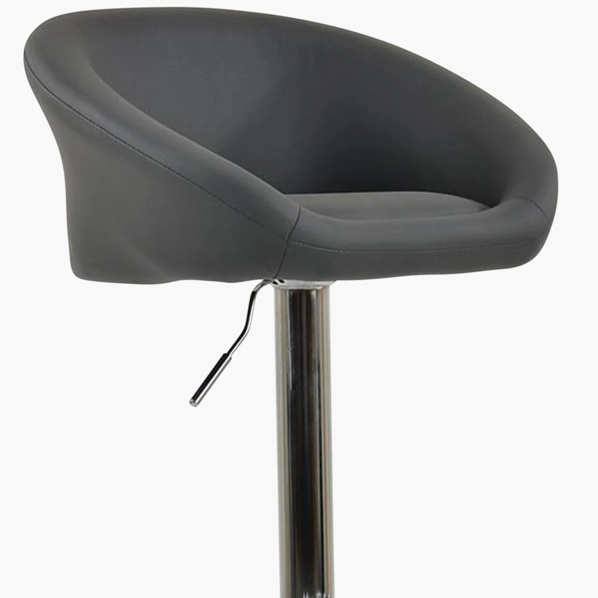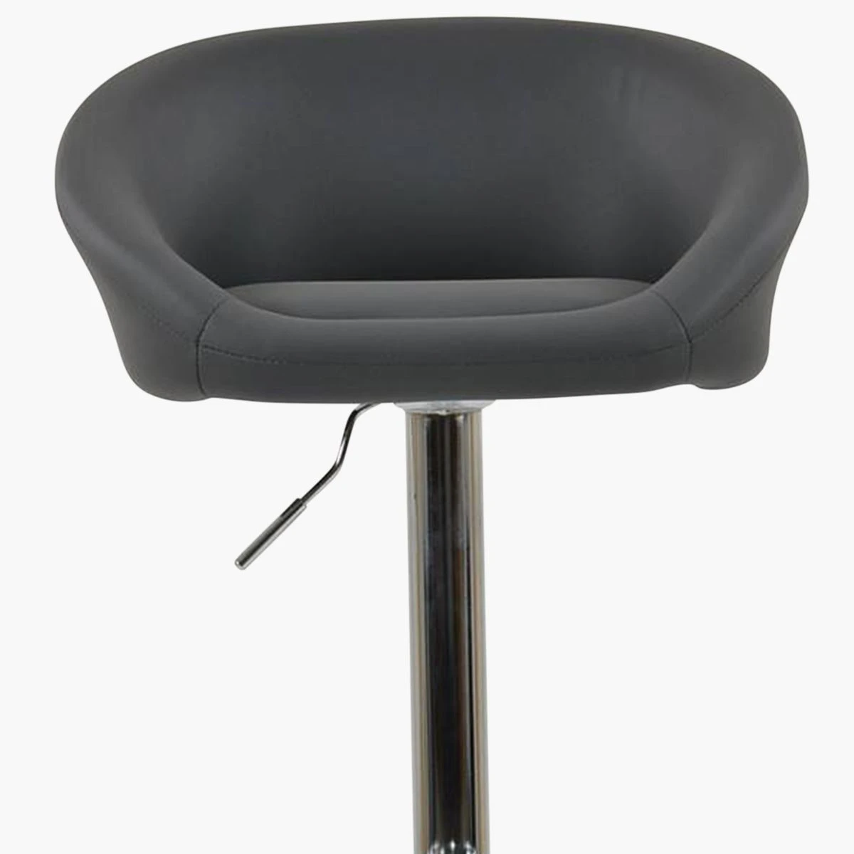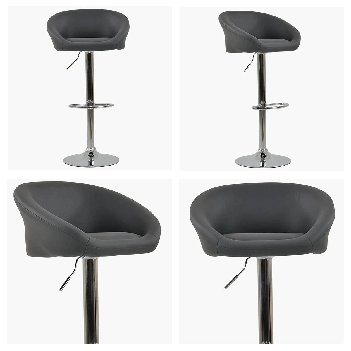 Meet the Venus dark grey faux leather bar stool. Its wide seat gives you lots of space, and the curved backrest and armrests make it super comfy. The 360-degree swivel feature lets you easily spin around, and you can adjust the height to make it just right. The chrome frame adds a sleek, modern look. The best part? It’s ready for next-day delivery!