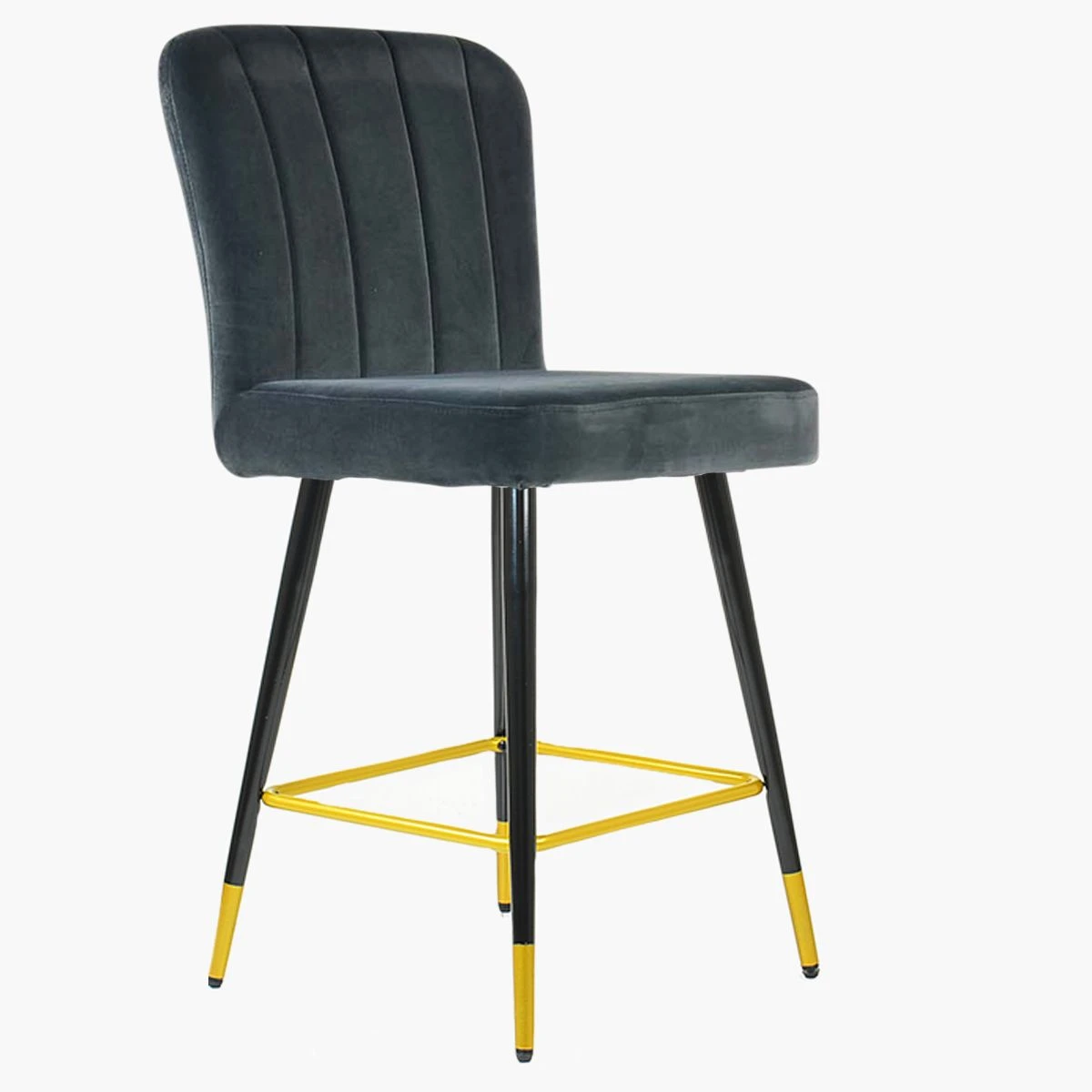Waldorf Dark Grey Velvet Black Gold Leg Barstool - Image 2