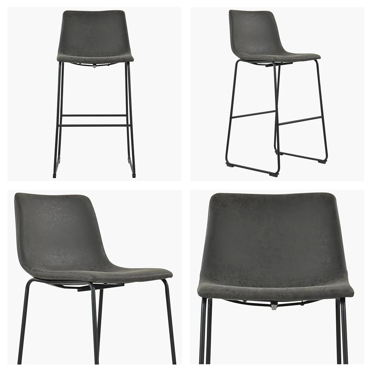 Faux Leather Seat Fixed Height Stool Elegant Design